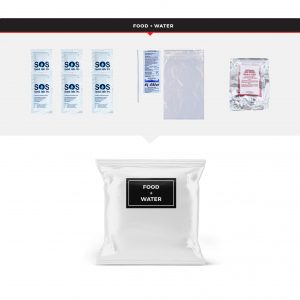 Food and Water: The food and water in this kit have a 5-year shelf life, and are meant to provide nutrition for 72 hours.